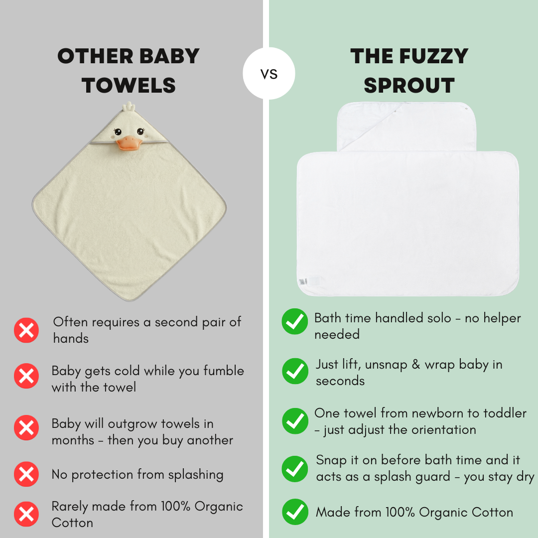 Bathing our little one isn't the easiest process and getting him in a towel might be the toughest part. The Fuzzy Sprout simplifies this process significantly and has made this much easier and efficient, keeping everyone a lot happier :)